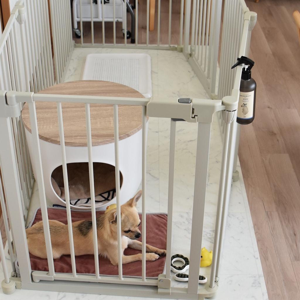 寝室では、ワイドクレートと組み合わせて就寝時に愛用中。
