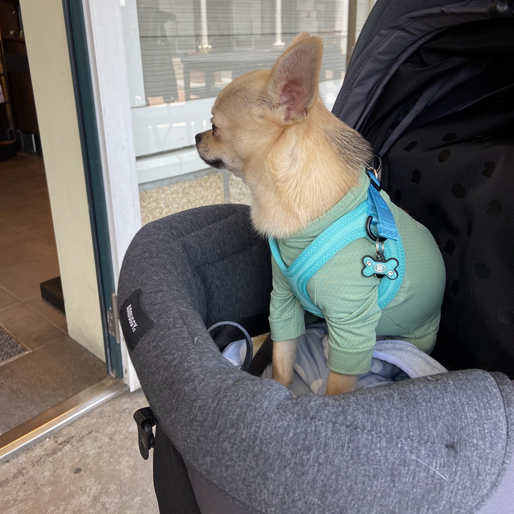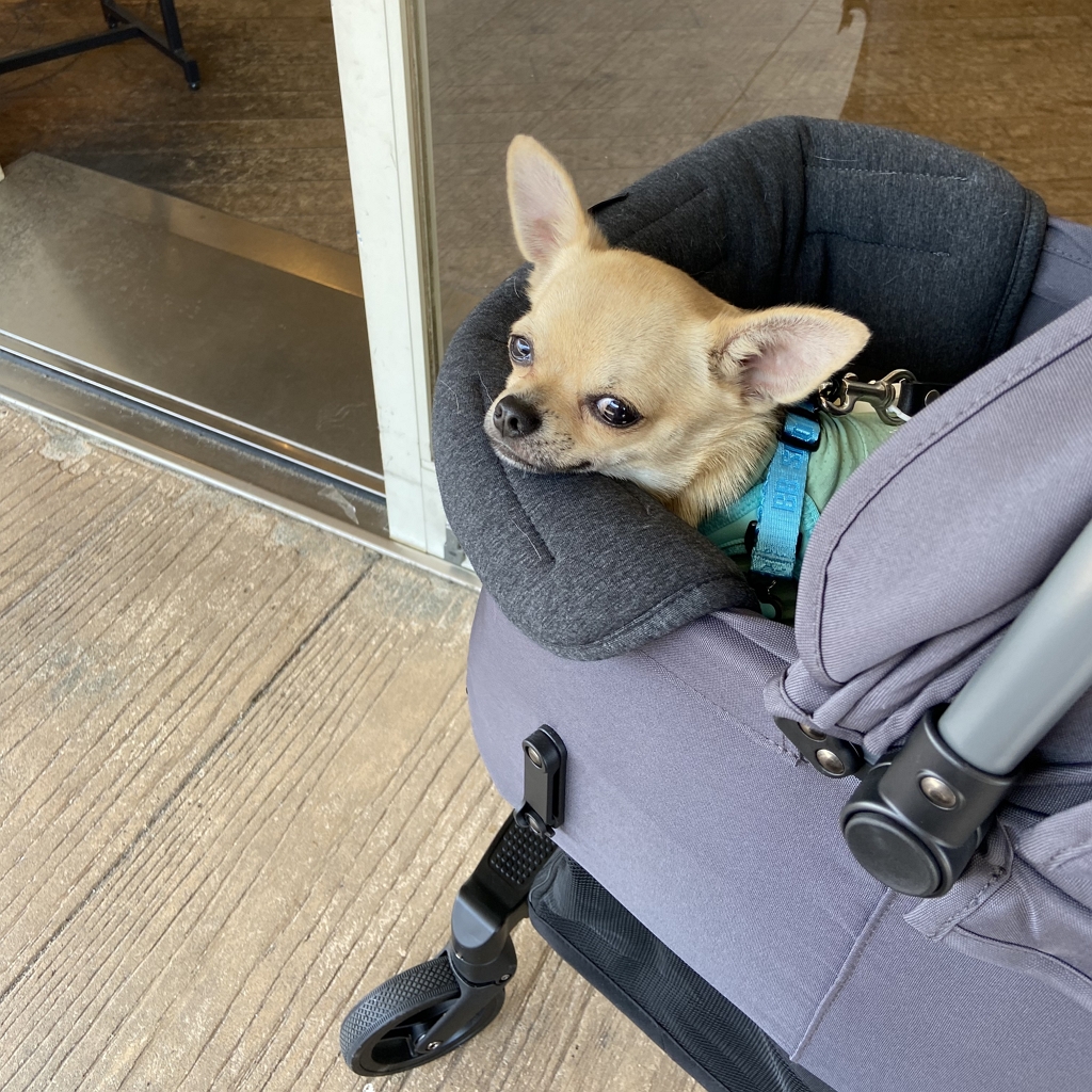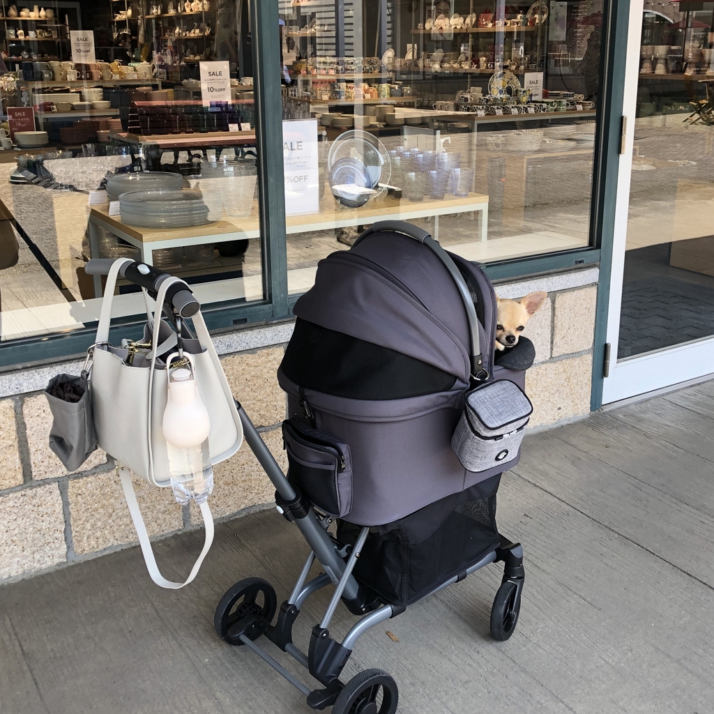 屋外のわんこイベントのときには、「もっと大きなペットカートも良かったかな?」とも思ったけれど、超小型犬なら、いろんな場所で使えるコンパクトサイズのカートは便利です。