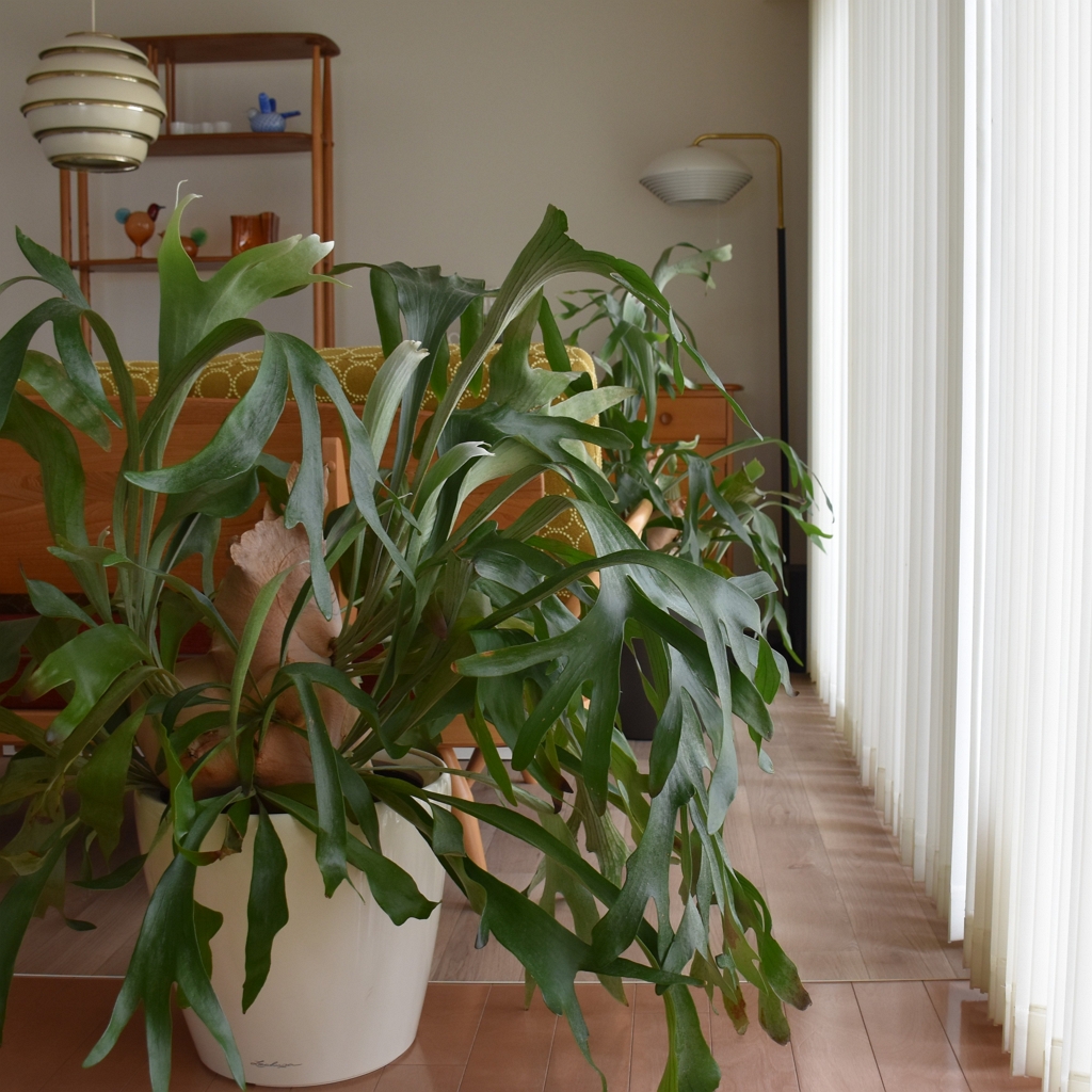 あと1週間ほどで1歳を迎えるもんたと、10年くらい育てているビカクシダ。
