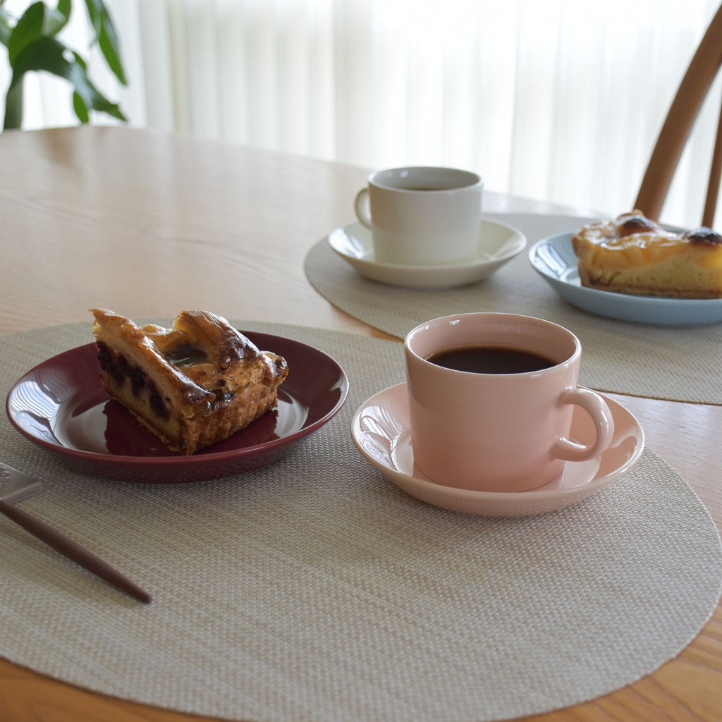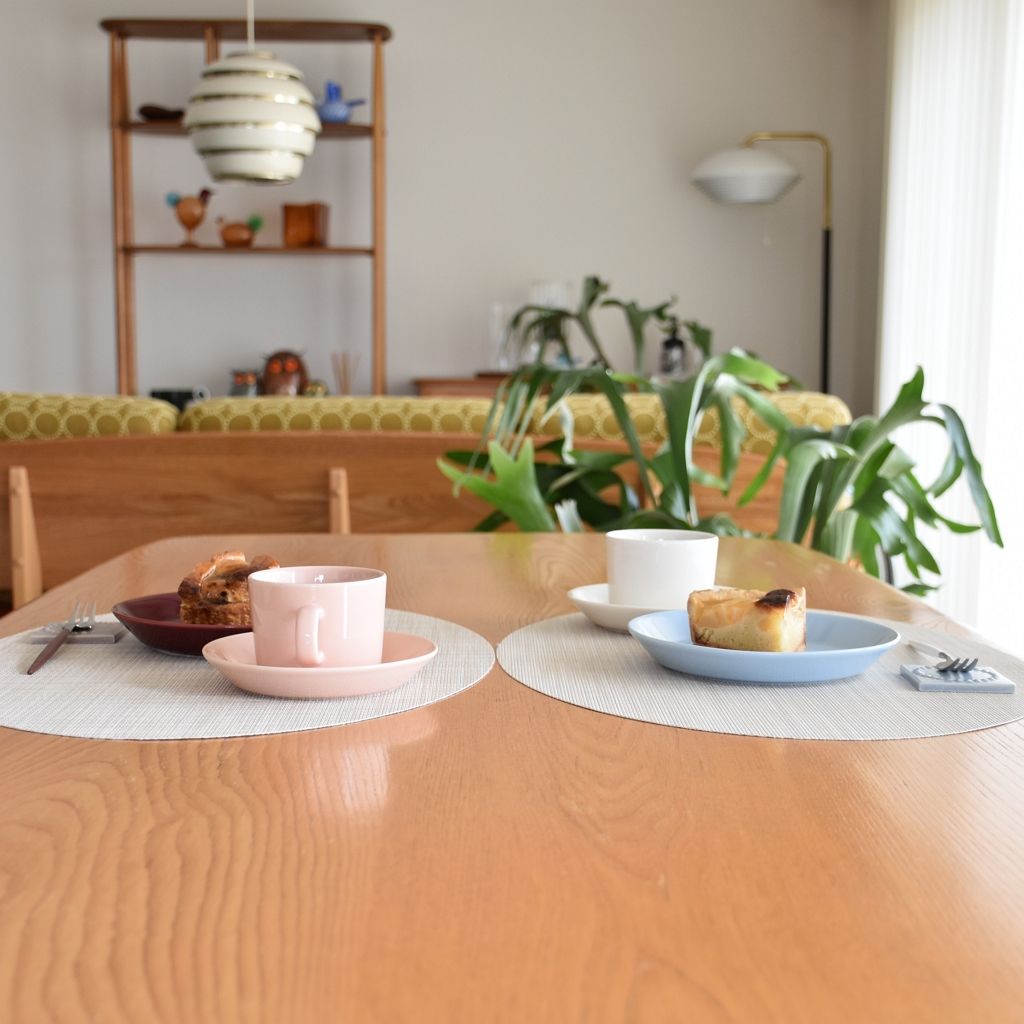 シンプルな形状のティーマは、いろんな色を一緒に使っても不思議とテーブルコーディネイトがまとまって見える。