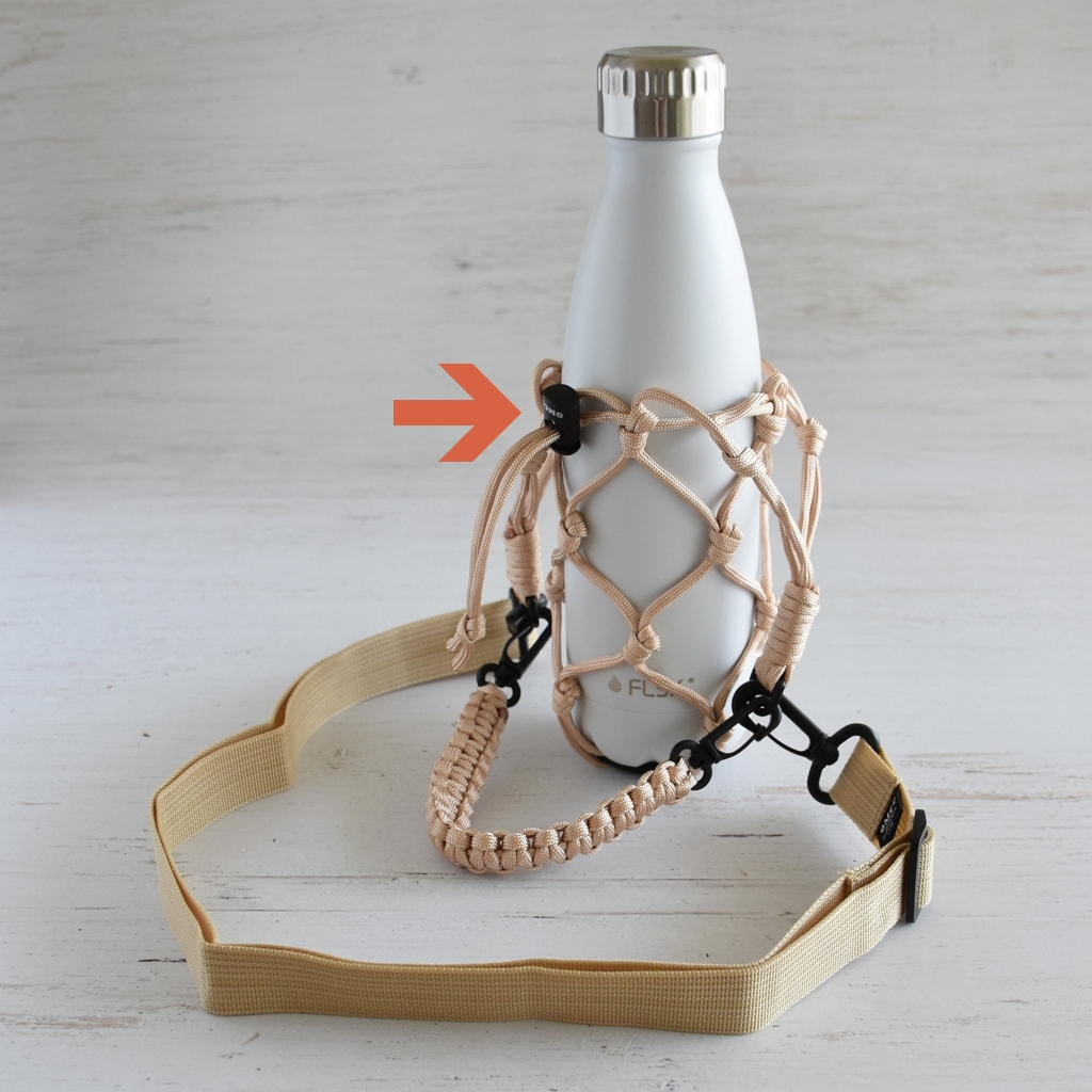 ドローコードでサイズ調整できるので、様々なボトルに使えます。