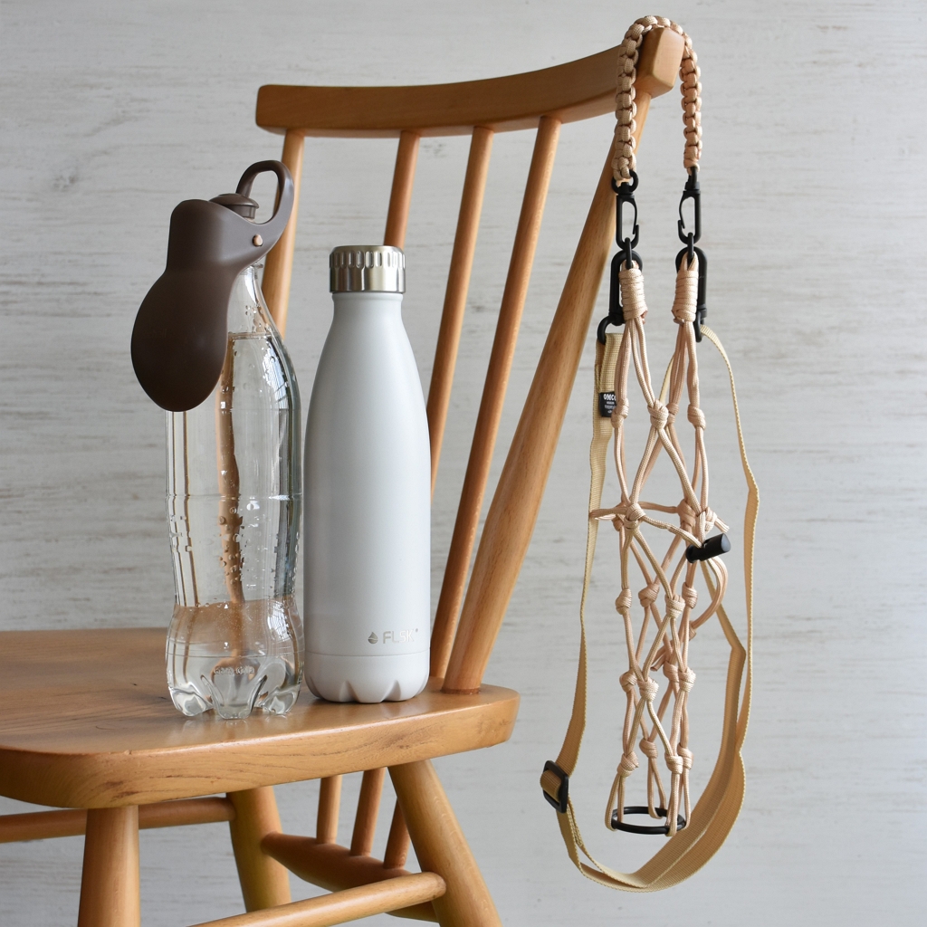 暑くなり、500mLから700mLペットボトルに付け替え、お散歩バッグのボトルポケットに入れ難くなったため、ボトルホルダーを使い始めました。