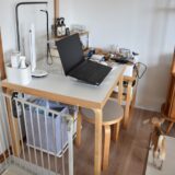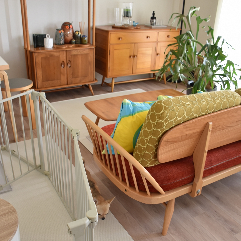 もんた用品の整理収納やワークスペースの使い方など、使い勝手がよくなるよう、リビングの愛犬兼用コーナーは見直しの連続。