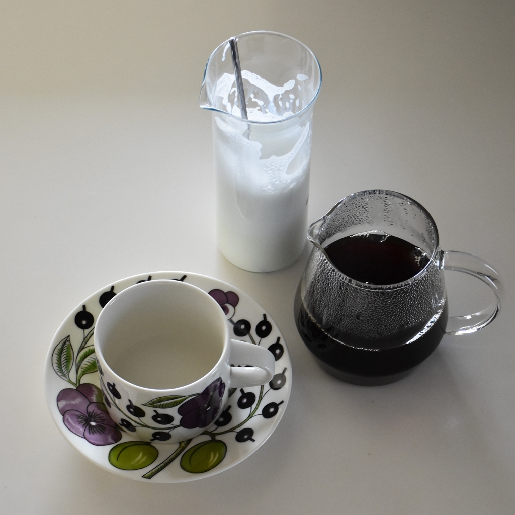 ひとまず、パープルのティーカップとプレート16.5cmでカフェオレ。