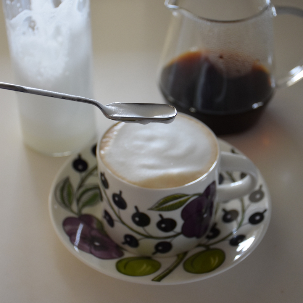 あと、コーヒースプーンとしては長いけれど、カフェラテをかき混ぜると、普通のコーヒースプーンでは持ち手のギリギリまで泡が付いてしまうので、意外とロングが便利だったり。