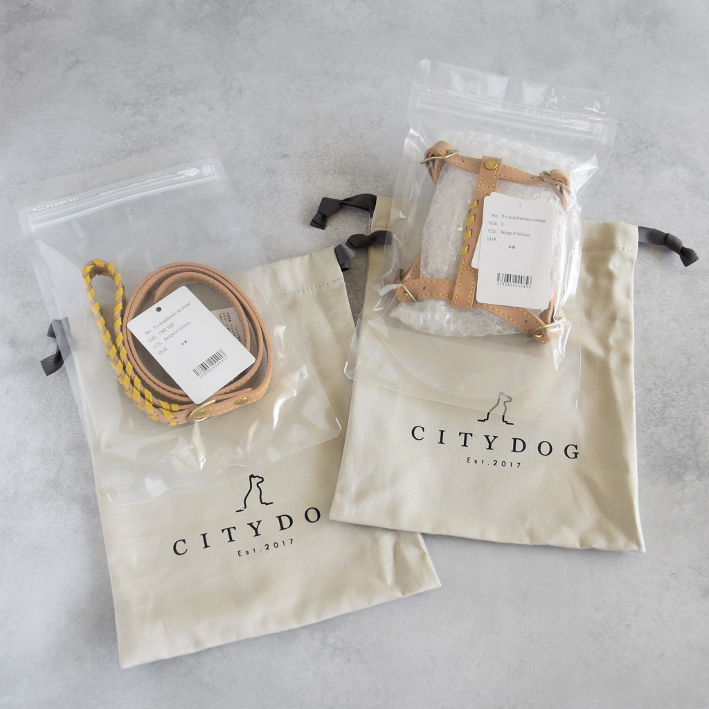 【Beige×Yellow】のハーネスとリード。