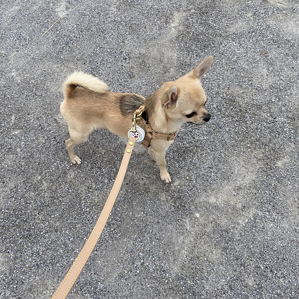ハーネスを新調したので、迷子札もポチ。