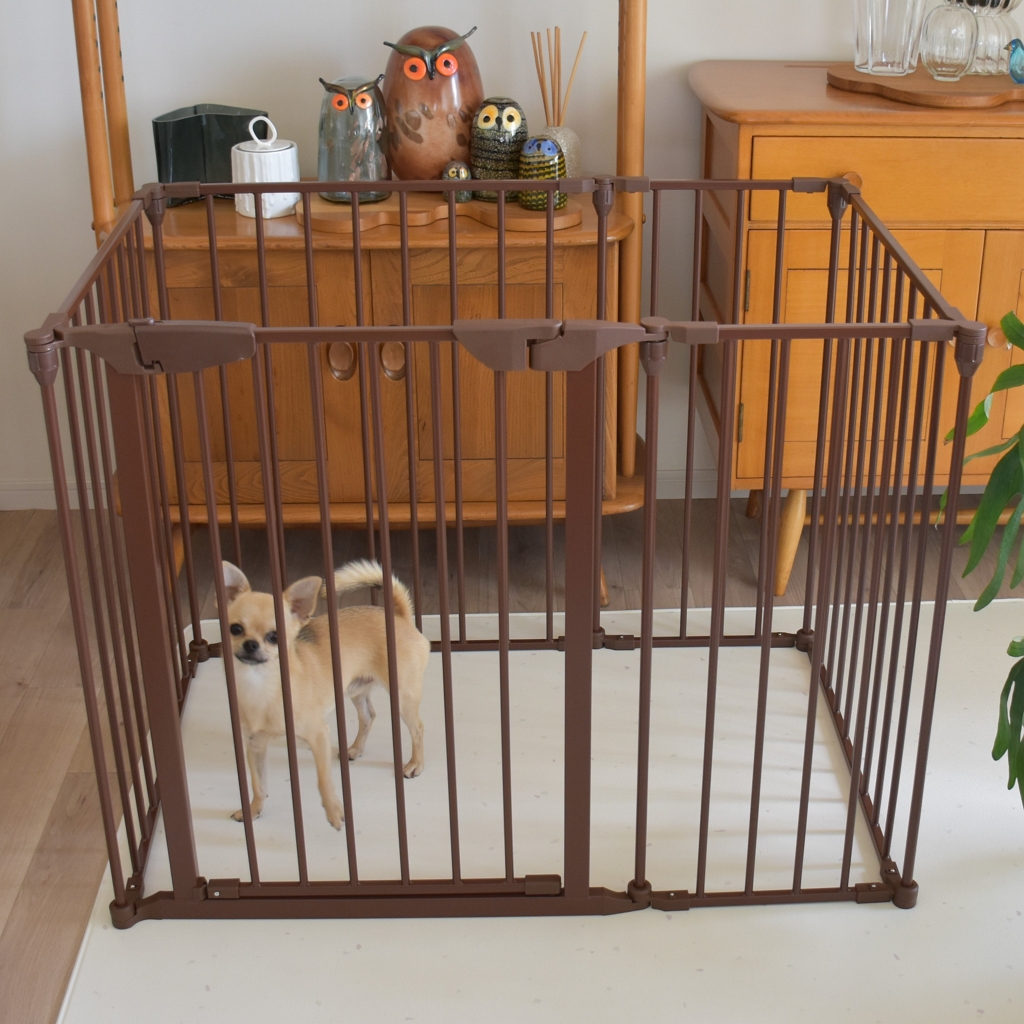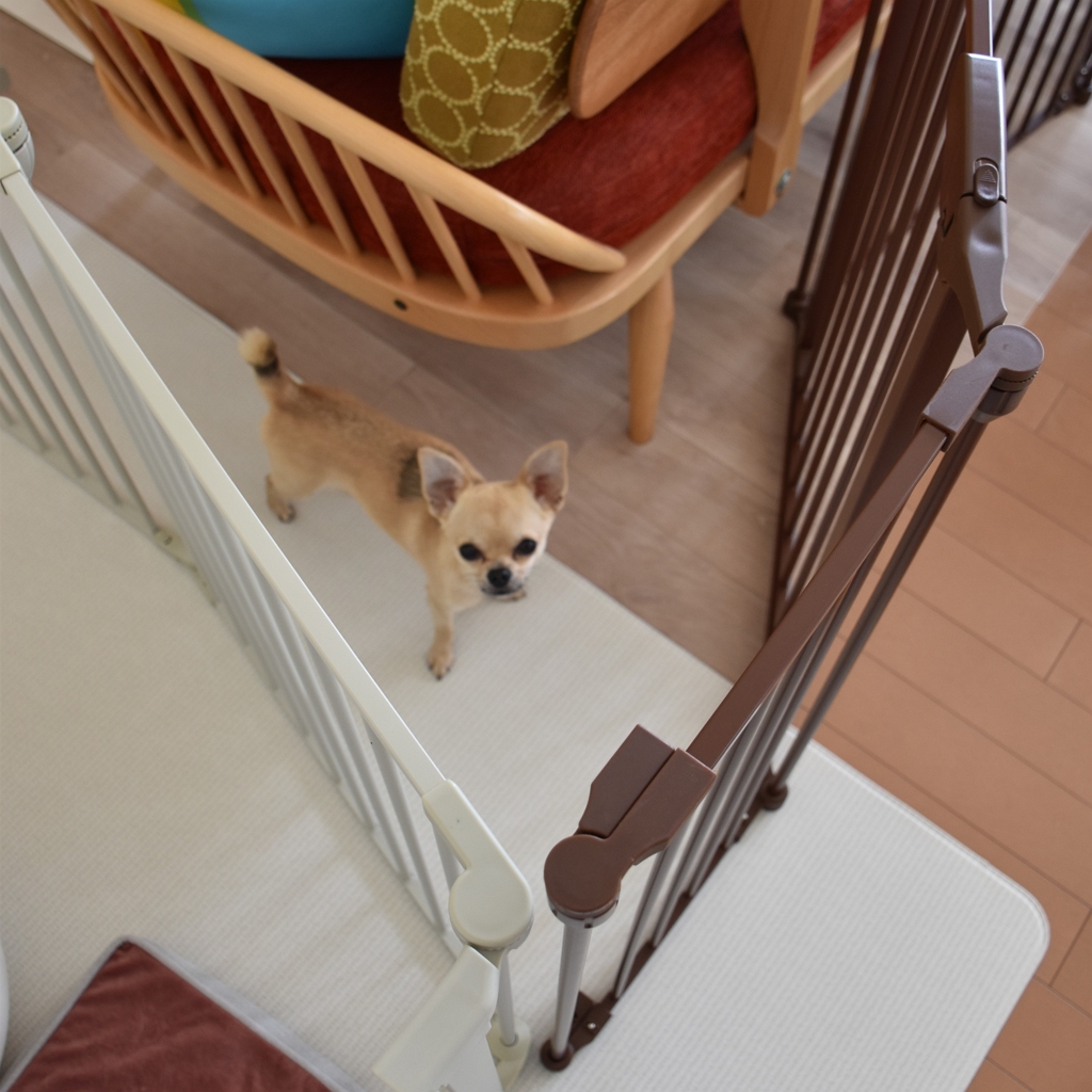 ミニサイズのケージは、広げてリビングのフェンスの代わりに使うために購入。