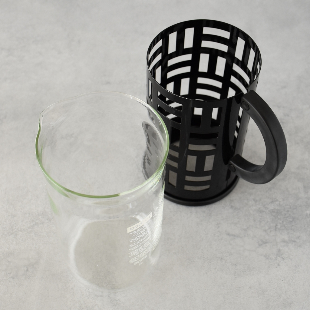 ポットはガラスビーカーとステンレススチールのフレームに分かれます。