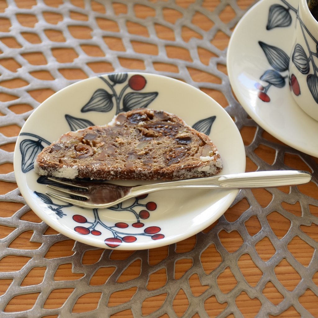 ルノ フロストベリー2025年新作のサービングプラターと、コーヒーカップ&ソーサーとシュトーレン。