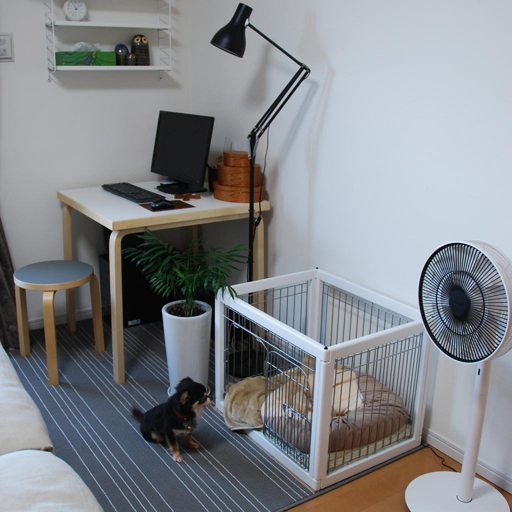 ダイニングを挟んで、窓際に81Aで主人のワークスペース、リビング側に81Cでわたしともんたの兼用スペースが完成。