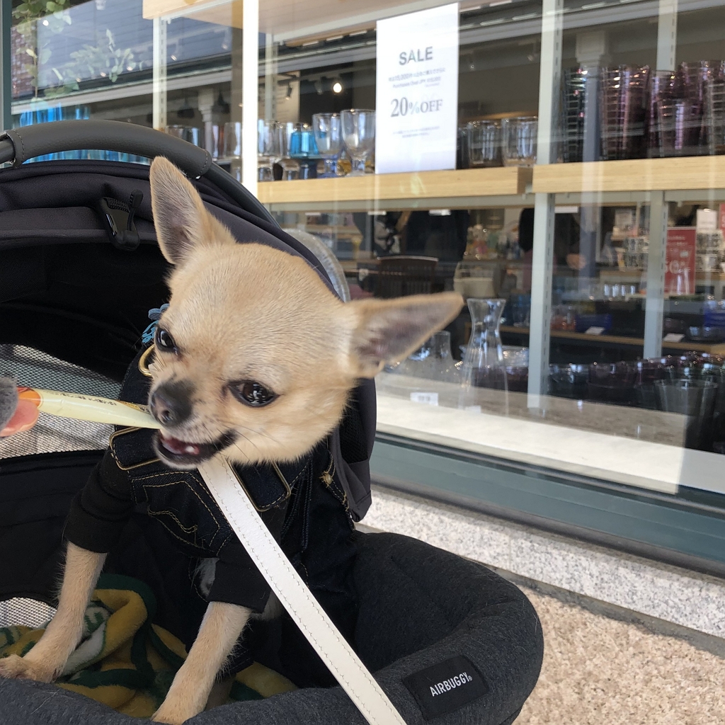 イッタラは、カートに乗せ、ルーフを閉じれば、ペットも入店可能。