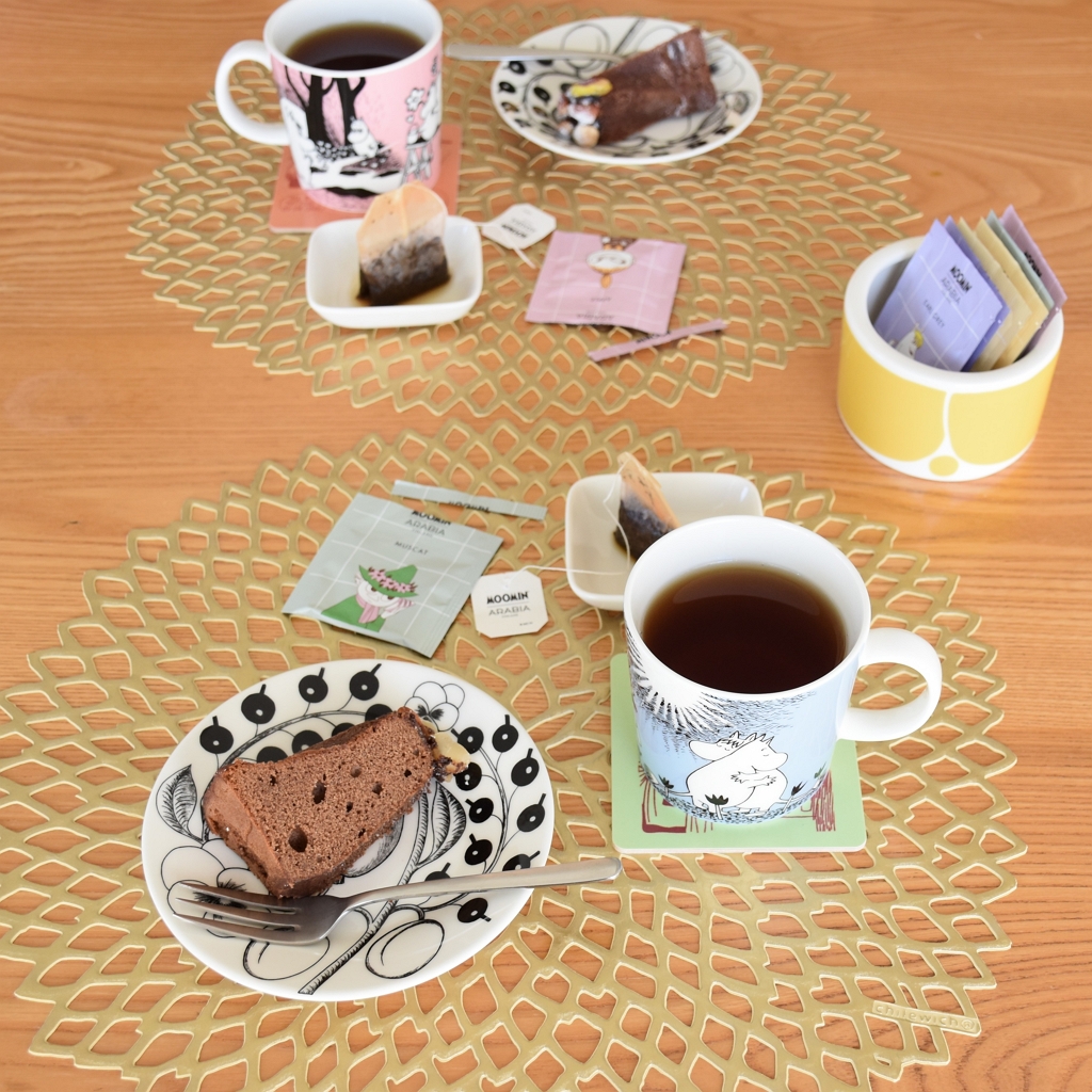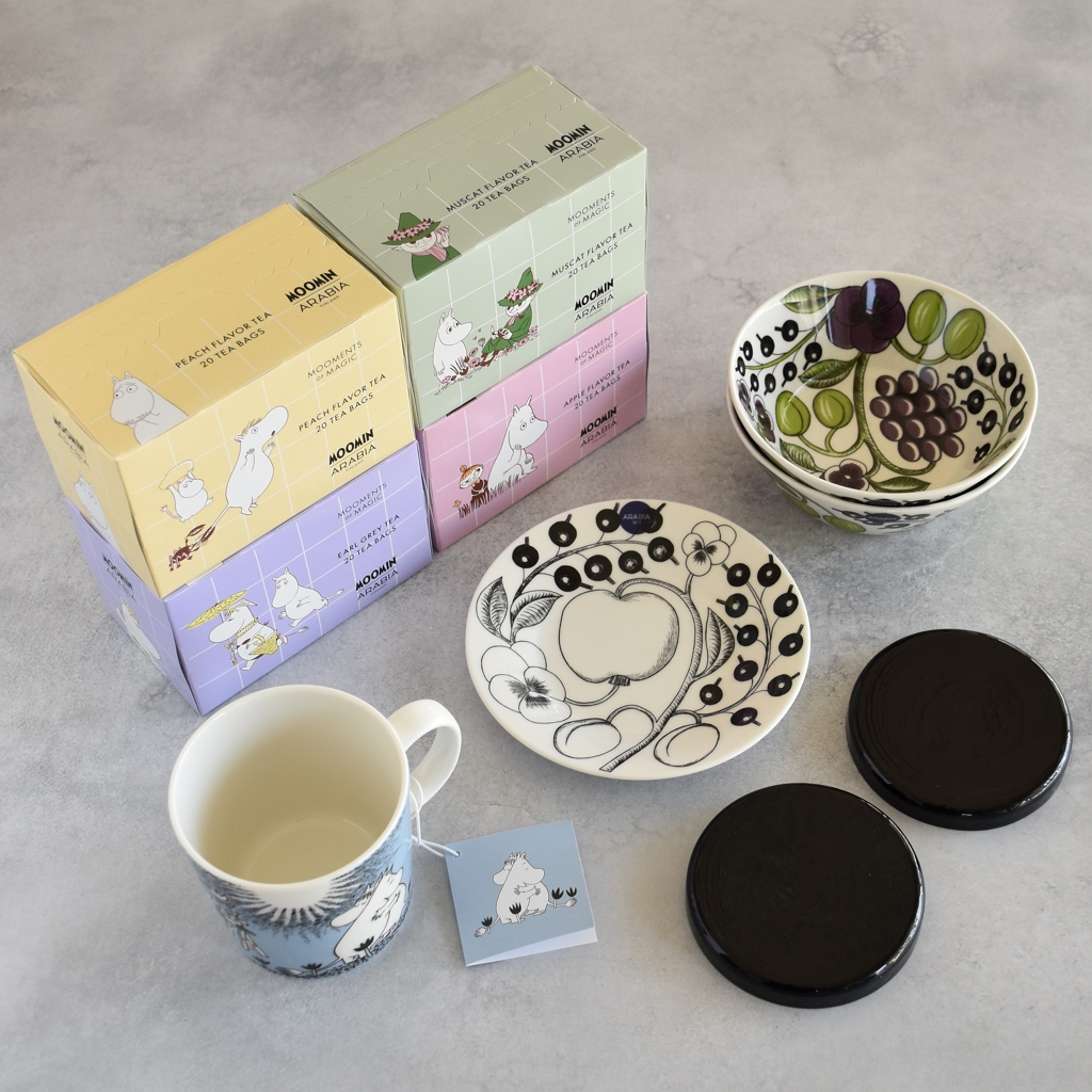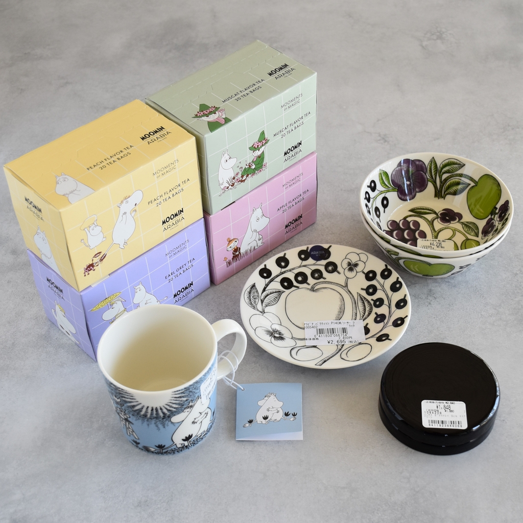 アウトレット店では、ムーミンの紅茶を4種類と、パラティッシ、ムーミンマグ、ガラストレイを買ってきました。
