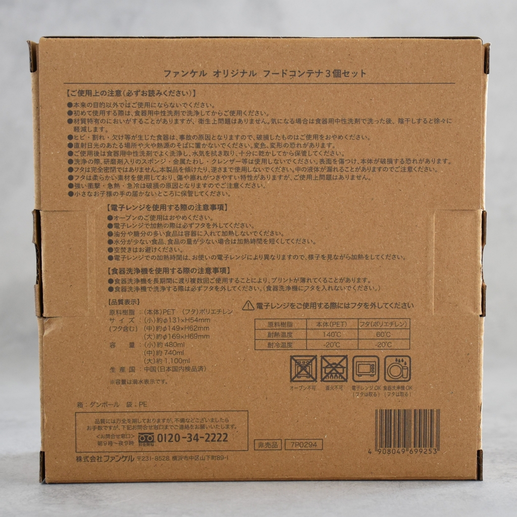 ファンケル オリジナル フードコンテナ3個セット 品質表示より