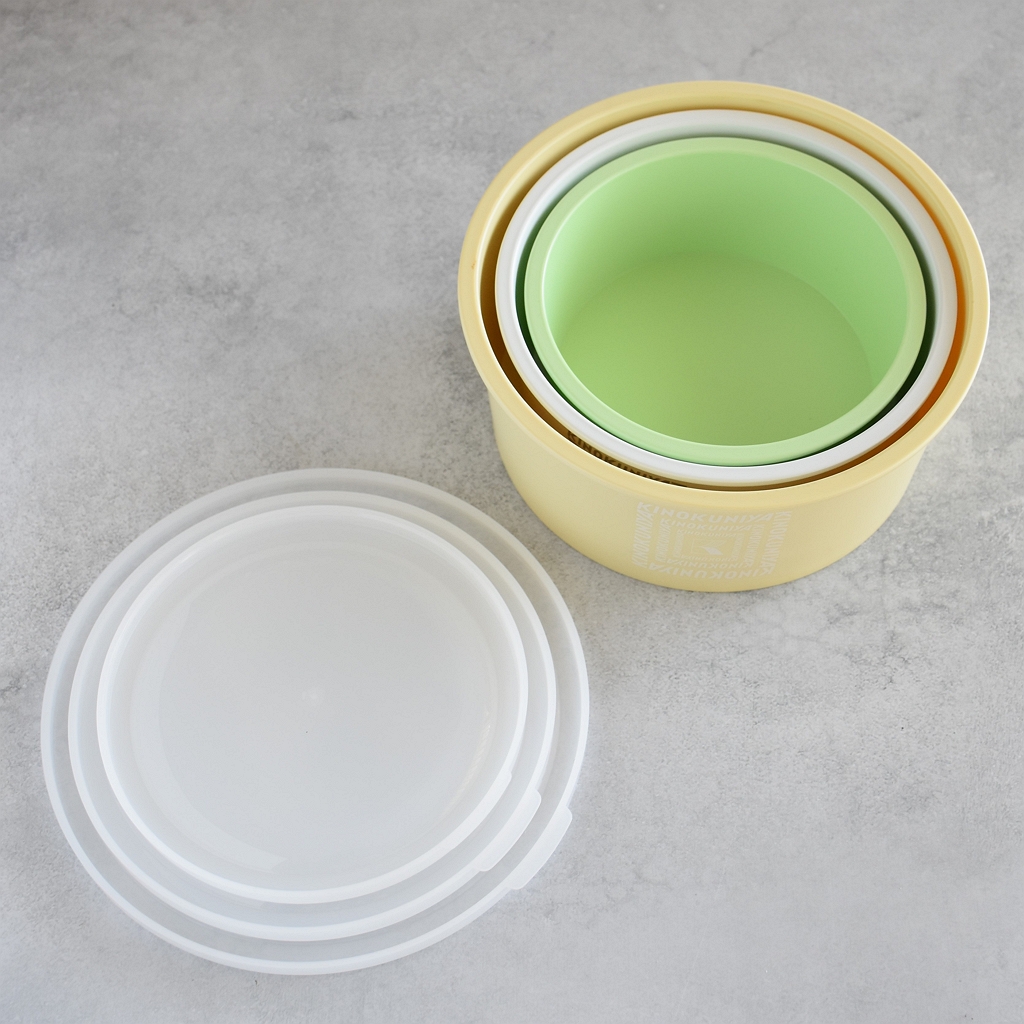 樹脂素材で軽く、割れにくく、空になったら入れ子にできるので、お弁当箱にも良さそうです。