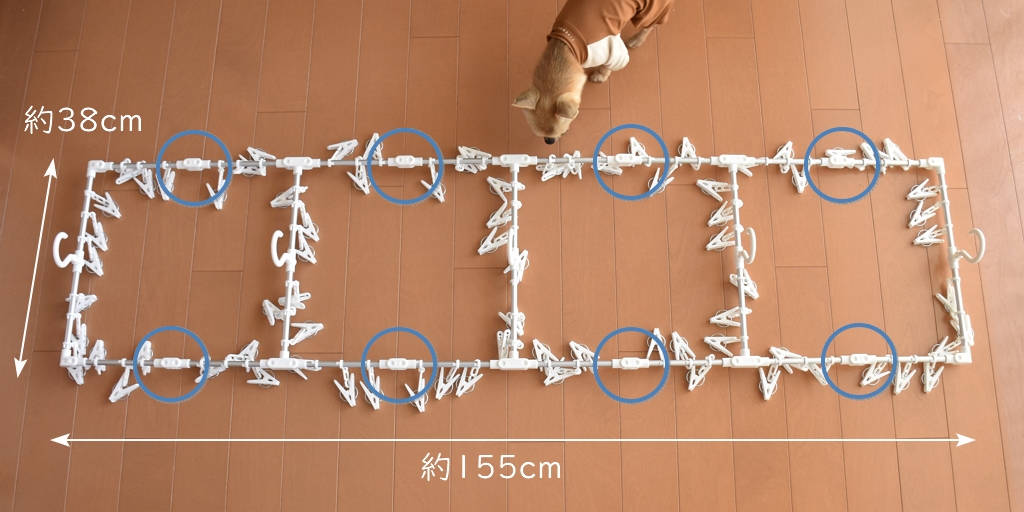 ジョイント部を直線に伸ばして角型にすると安定し、洗濯物の間隔も広がります。