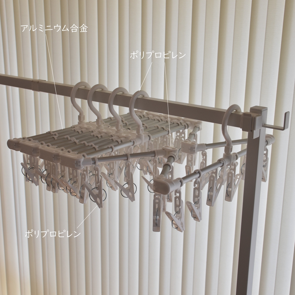 フック、ジョイント部、ピンチはポリプロピレン。