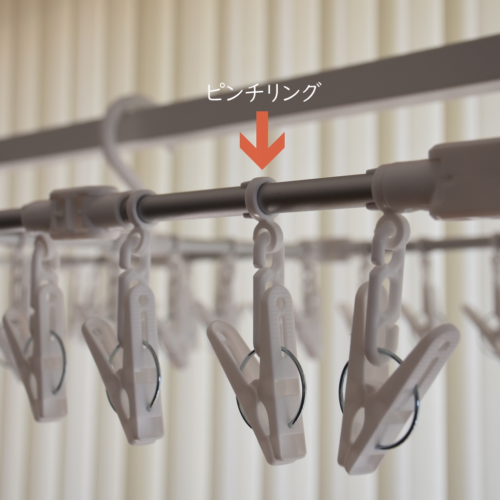洗濯物の種類や量に応じてピンチの位置を変え、洗濯物の間隔を調整。