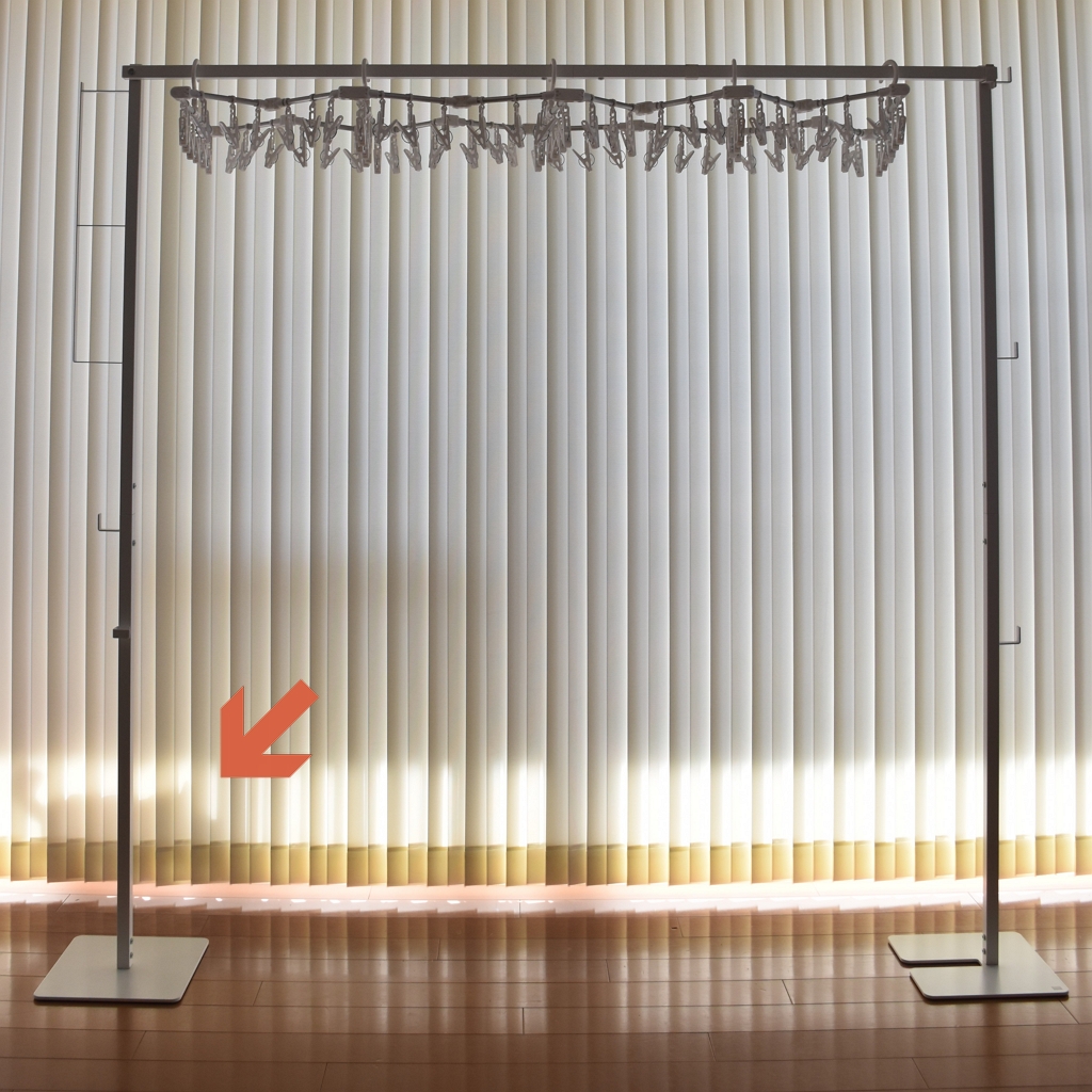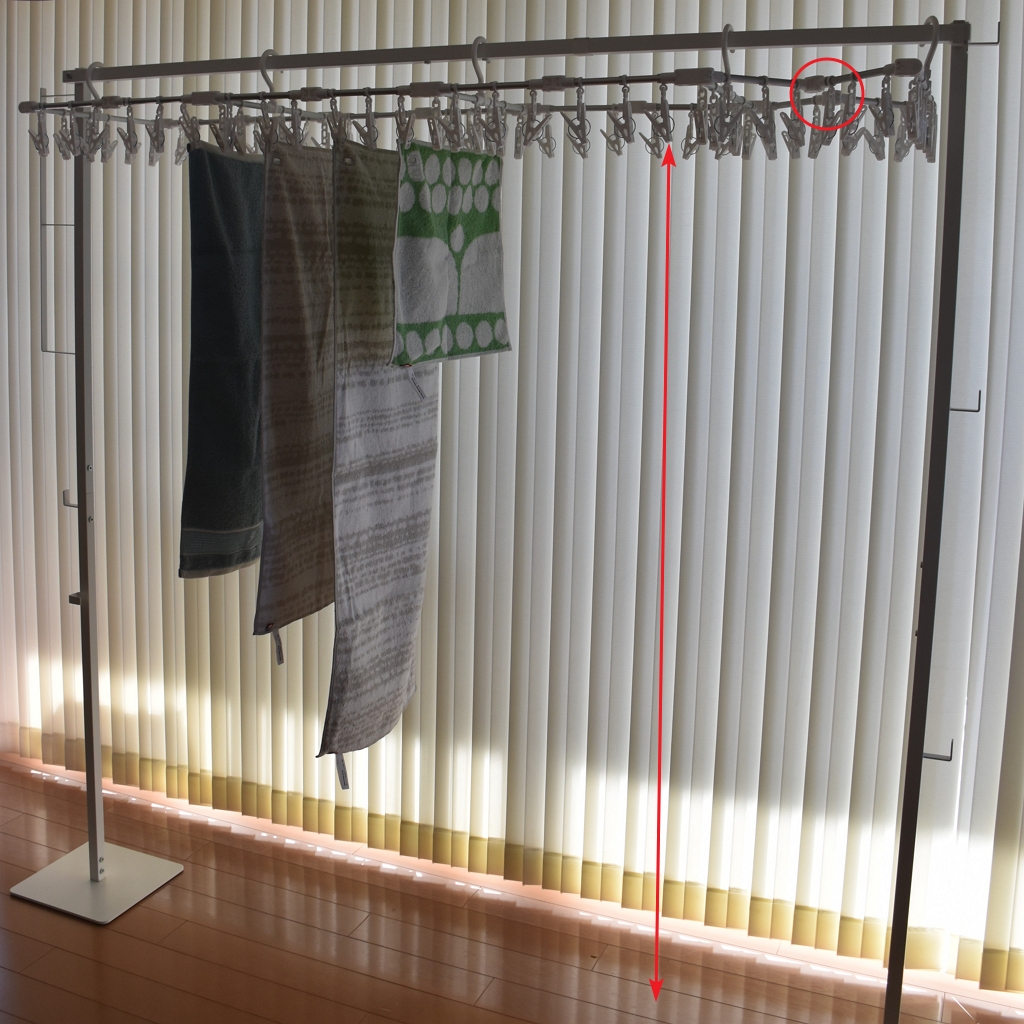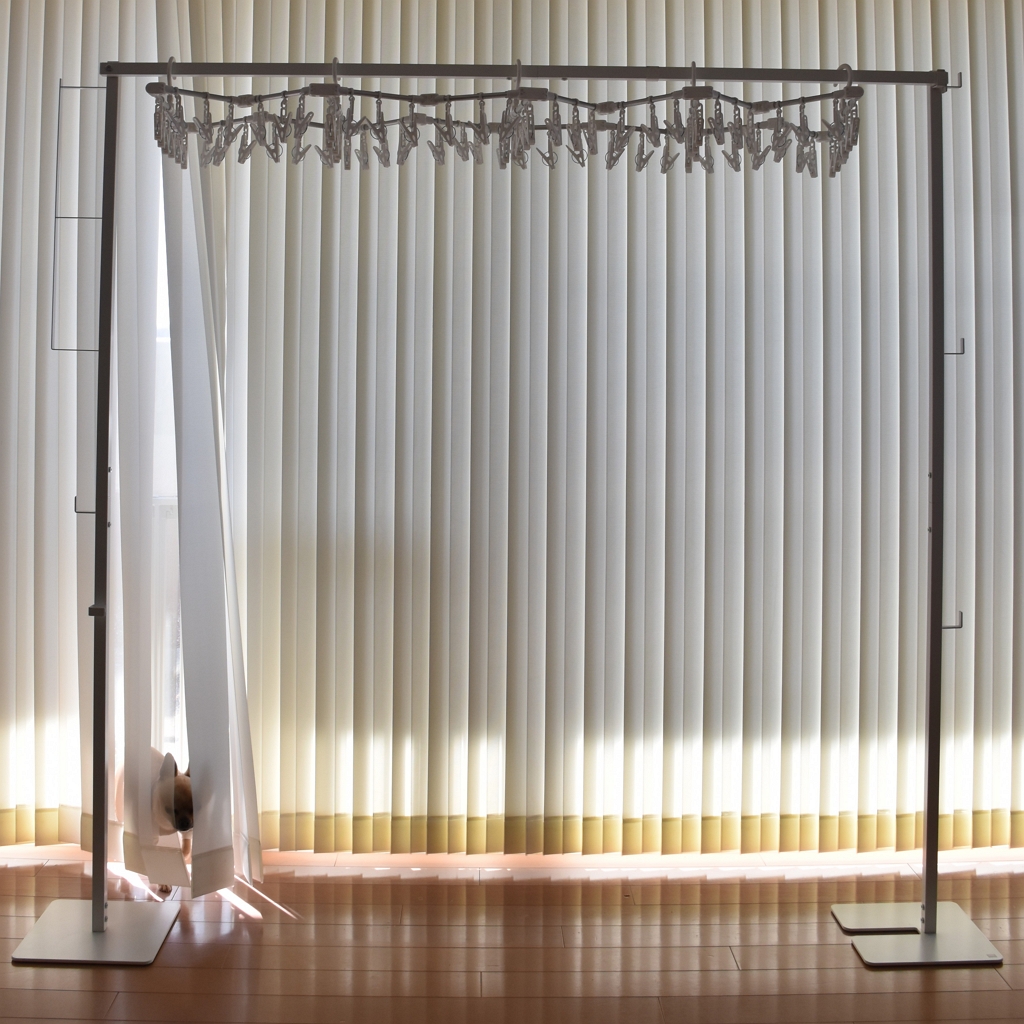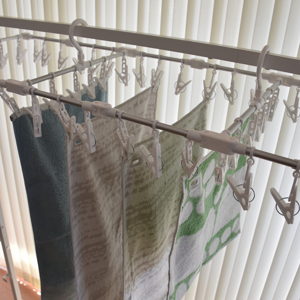 購入品に加え、2つに増えたので、洗濯物が多いときの部屋干しでも、窓際にも浴室にも、たくさん干せる。