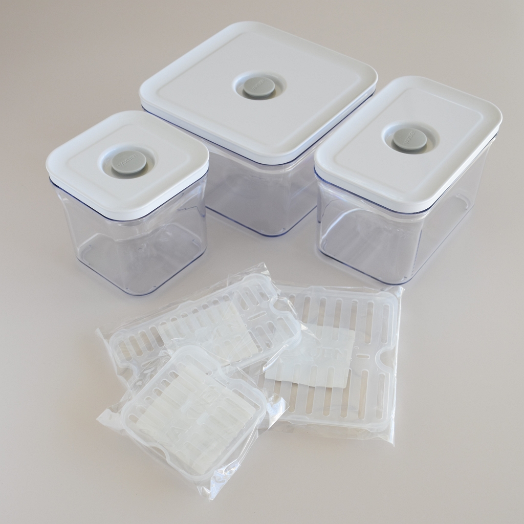 水切りトレイ無しでも便利ですが、より衛生的に、効果的に真空保存容器を活用するために水切りトレイを購入。