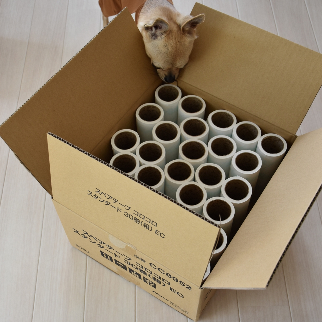 抜け毛発生源がうろうろ動き回っているので、家中、いろんなところに置いて、せっせとコロコロしようと思います。