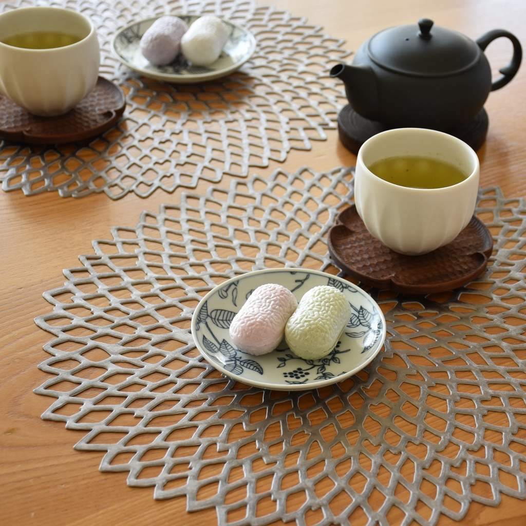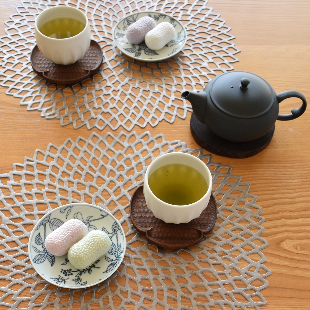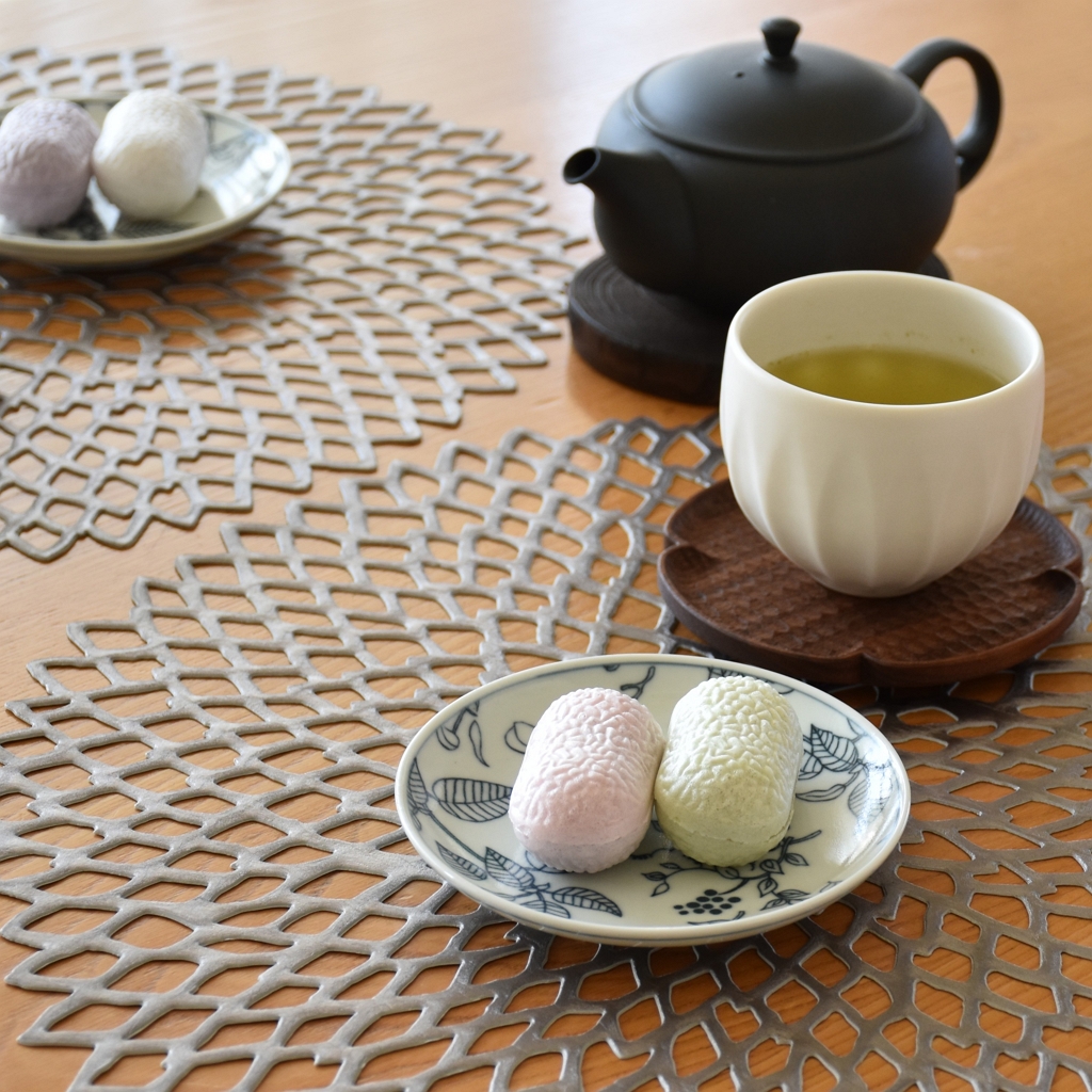最中を並べた小皿はスコープさんの買えないノベルティ【リーヒティエ】。