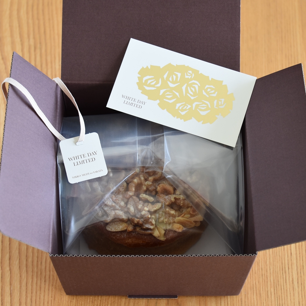 【キャラメルとクルミのケーキ】は、ホワイトデー用のギフトボックス入り。