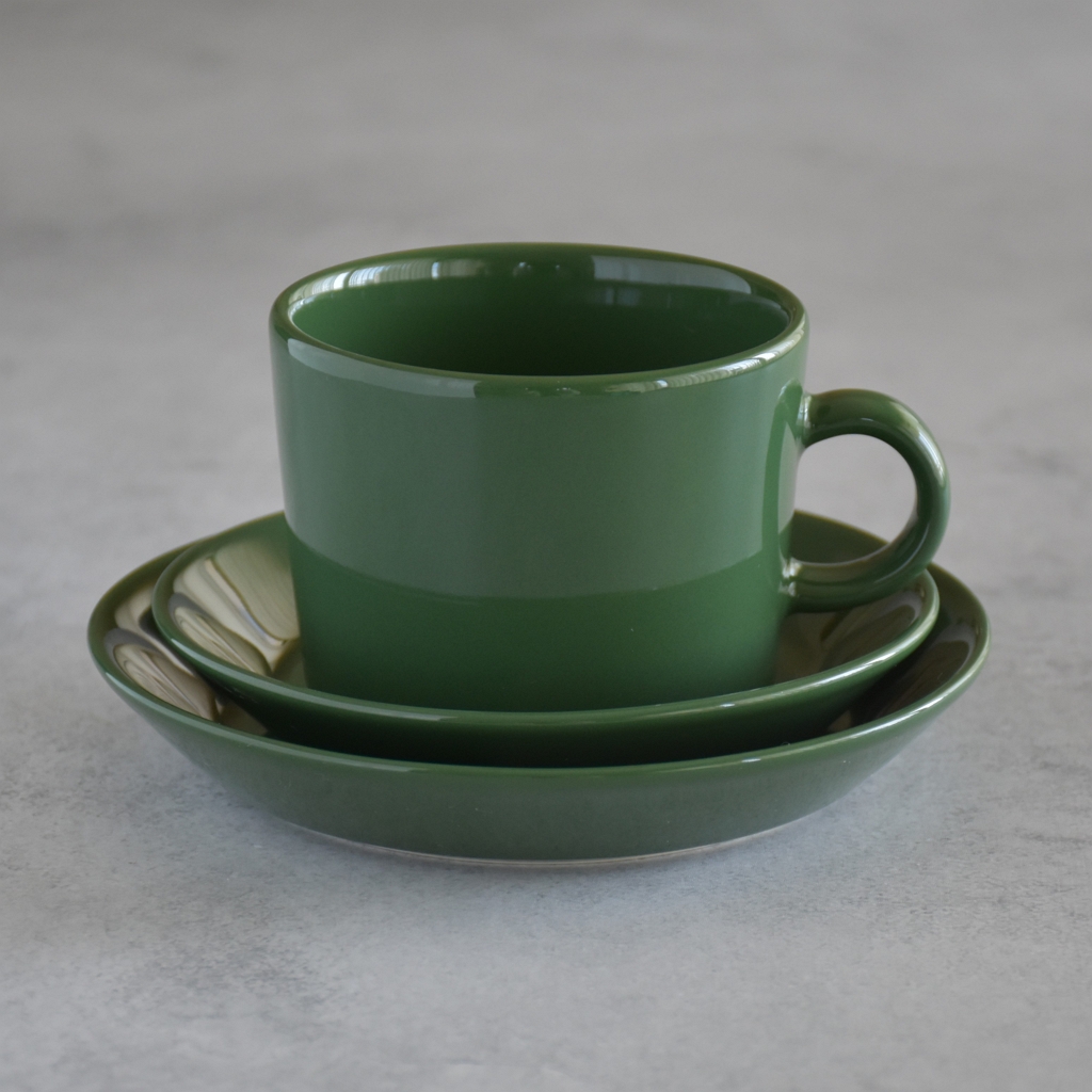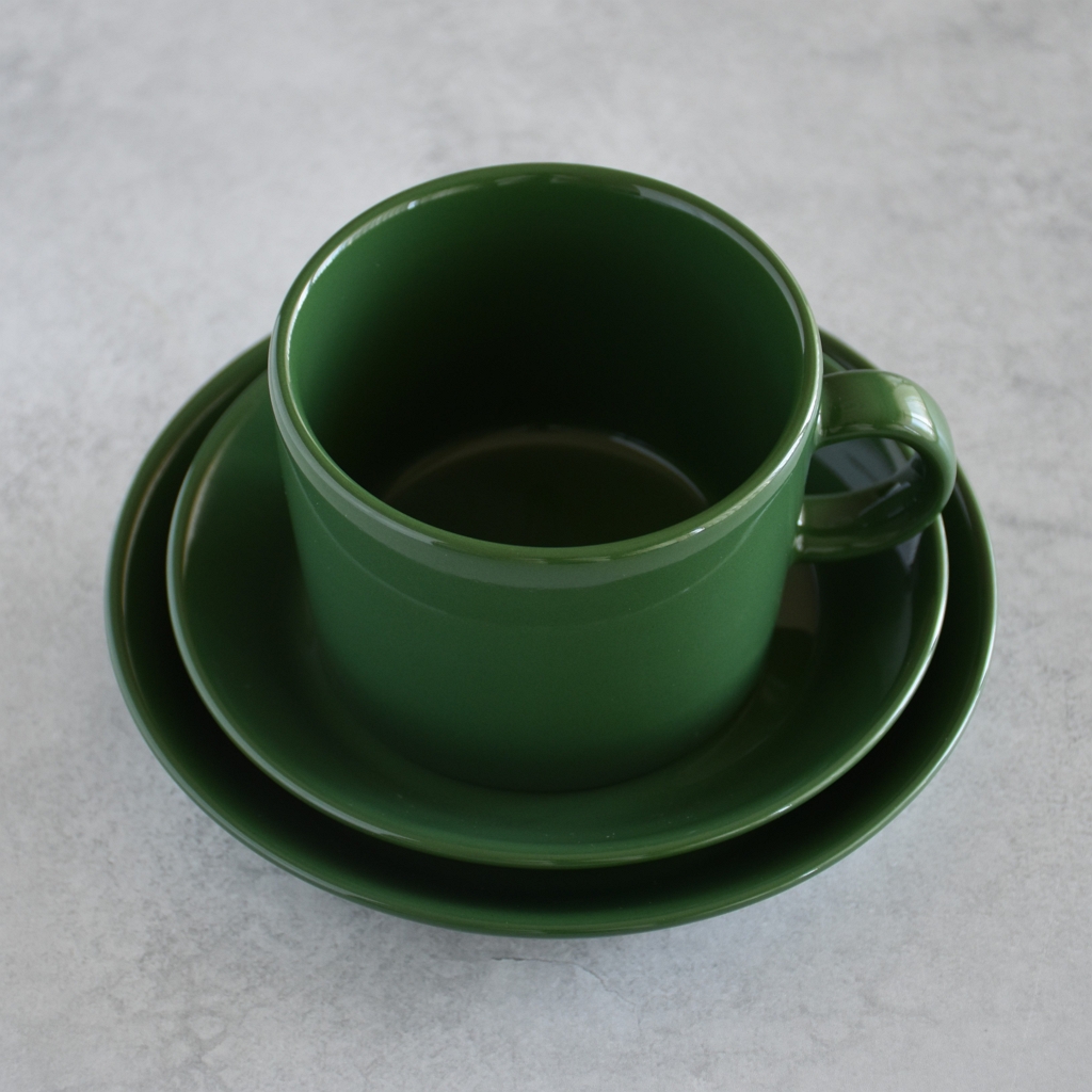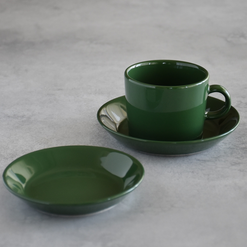 というのも、北欧食器に興味を持ったころに書籍の中で見た、ティーマの前身、アラビア キルタの濃いグリーンのティーセットの印象が強く残っていたから。