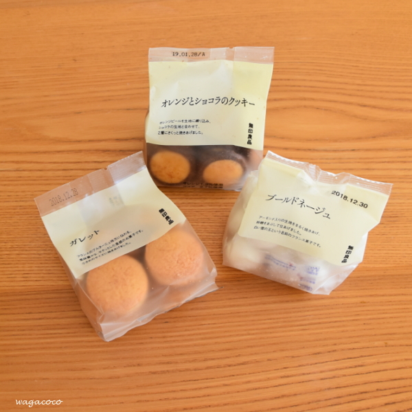 【オレンジとショコラのクッキー】、【ガレット】、【ブールドネージュ】3点購入で15%オフでした。